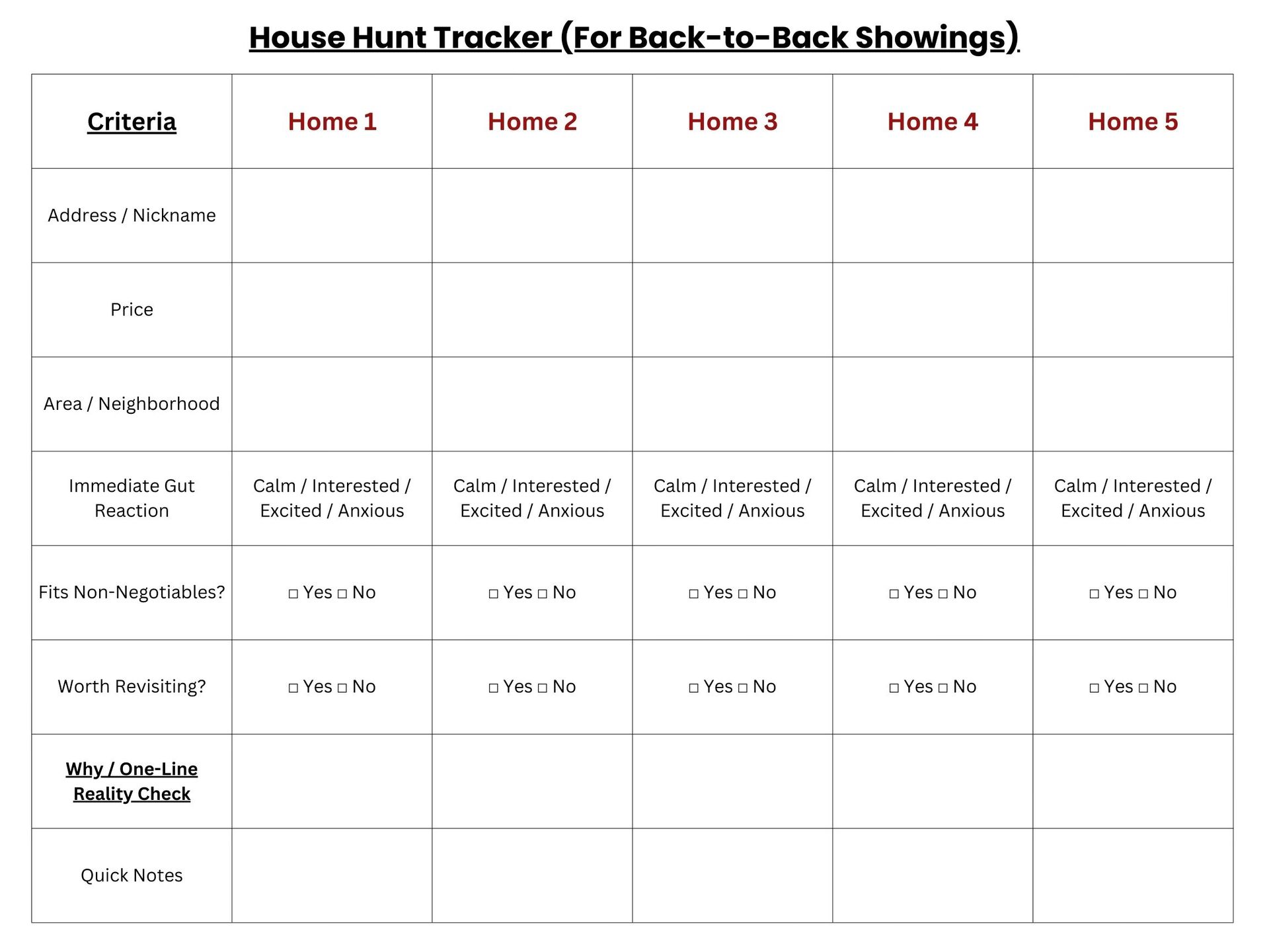 (Tool #1: House Hunt Tracker — For Back-to-Back Showings)